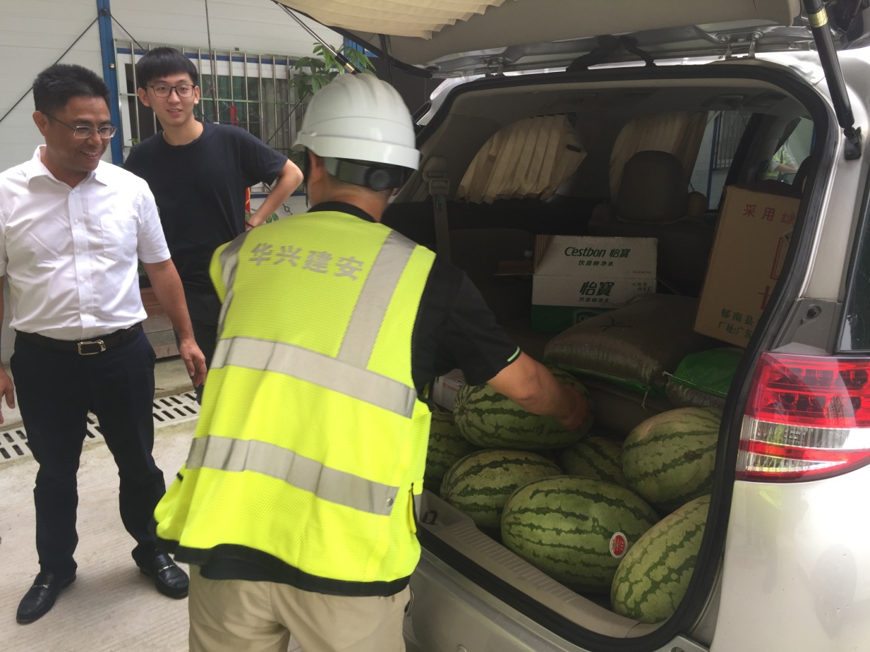 8月9日上午,副总裁吴先史带队前往米兰·(milan)米兰官方云谷项目部,给项目全体管理及施工人员送去西瓜、绿豆、凉茶等防暑降温用品,将集体的关怀与问候带给员工。在项目现场,吴总叮嘱大家要注意防暑降温,工作要劳逸结合。项目全体员工要克服各种不利因素,保证工程进度和质量。
