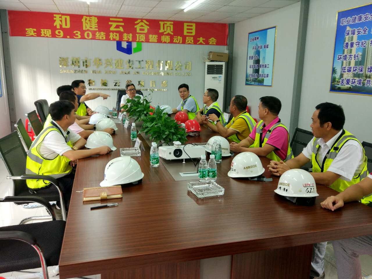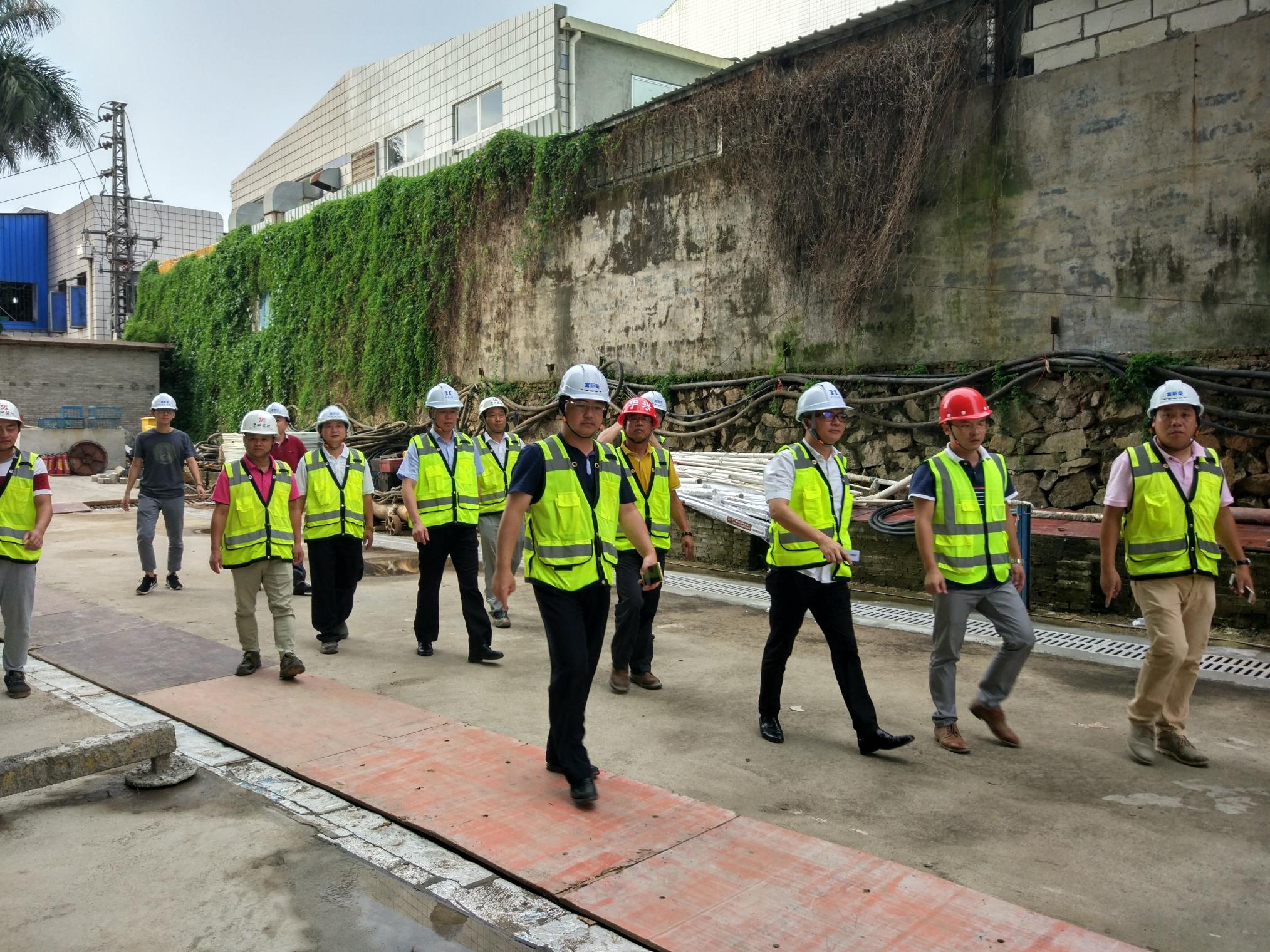 赵总一行首先到项目部办公室,听取了项目各相关负责人关于现场工作的情况汇报,并详细询问了工程进度、工程质量、施工难点和现场安全工作等事宜。在工程总监朱陶园的陪同下,赵总一行一边参观项目工地,一边认真听取相关人员的工作汇报。