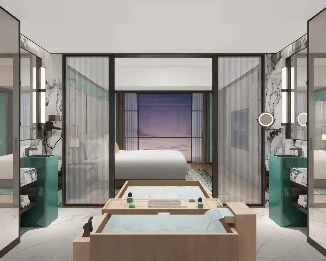 HHD假日东方设计在传承国韵之美的基础上,还遵循令住客“回归自然”的设计理念,客房整体用色淡然、素雅,低调而不张扬,将绿意氤氲的竹色贯穿整个空间,居于此,不经意间就能消弭了疲累,优雅的舒展出生活本该有的淡泊与安然。